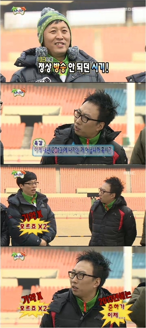 박명수는 “방송이 내년에 나가는 거냐. 준하가 좋은 일이 있겠다”고 예고했다. 당시에는 정준하의 결혼이 극비였다. 그는 지난 해 결혼했다. 정준하는 “눈치가 없다”면서 당황스러워했다. 박명수의 예언대로 지난 해 2월 촬영한 멤버들의 건강검진은 1년 만에 공개됐다.