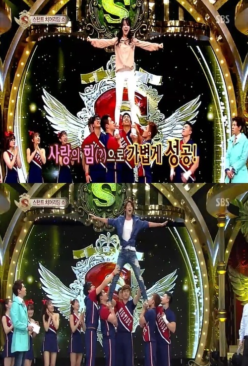 이러한 가운데 광희와 민아가 이 쇼에 도전했다. 민아는 팀원들의 어깨를 밟고 공중에 오른 뒤 "느낌이 아주 그냥 죽인다"며 치어리딩쇼에 도전한 소감을 밝혔다.