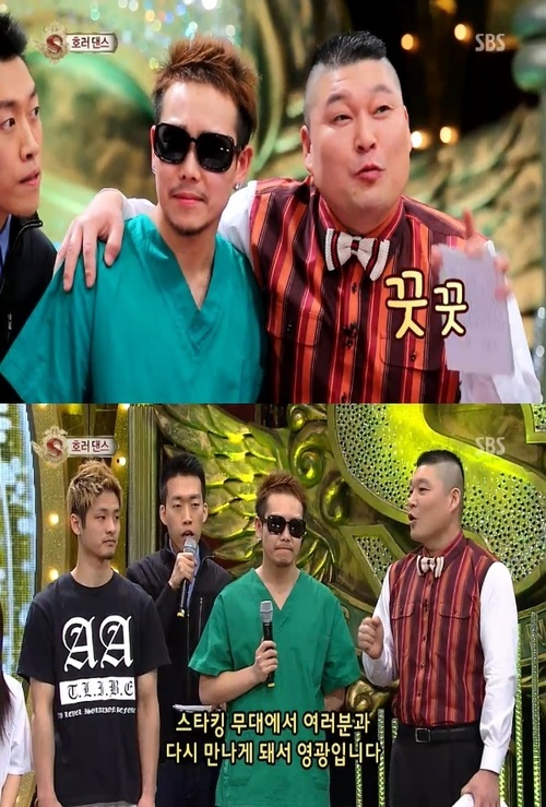코우테 세닌은 지난달 '스타킹'에 출연해 장우혁과 댄스배틀을 벌이며 온몸을 자유자재로 움직이는 로봇댄스로 눈길을 모은 주인공. 이날 타임머신 팀원으로 등장한 그는 수술실을 배경으로 오싹한 느낌을 자아내는 퍼포먼스를 펼쳐 또 한 번의 수준 높은 공연으로 큰 박수를 받았다.