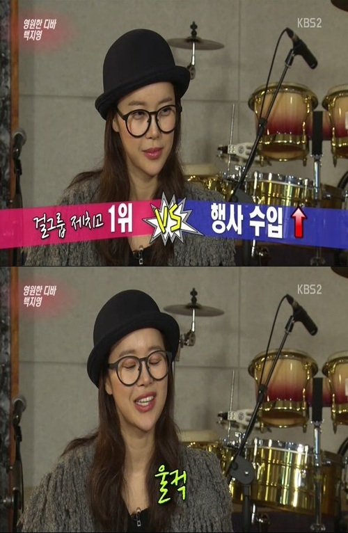가수 백지영이 "걸그룹 경쟁에서 이긴 것 보다 행사 수입이 높은 것이 더 좋다"고 밝혔다.