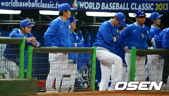 대표팀 류중일 감독을 비롯한 코칭스태프가 심각한 표정으로 경기를 지켜보고 있다./jpnews@osen.co.kr