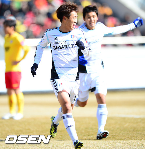 3일 오후 성남 탄천종합운동장에서 열린 성남 일화와 수원 삼성의 현대오일뱅크 K리그 클래식 2013 수원과의 개막전에서 수원 서정진이 선제골에 성공한 후 기뻐하고 있다.