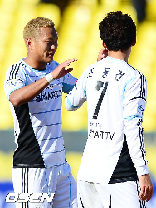 경기를 마치고 수원 정대세와 조동건이 하이파이브를 하고 있다. / rumi@osen.co.kr