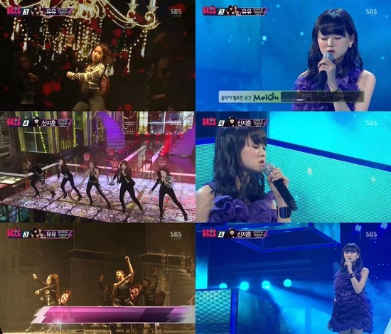 유유는 박진영의 '난 여자가 있는데'를 선곡해 열창했다. 이들은 마치 노래 초반 하나의 뮤지컬을 보는 듯 인형춤을 선보여 시선을 단번에 사로잡았다.