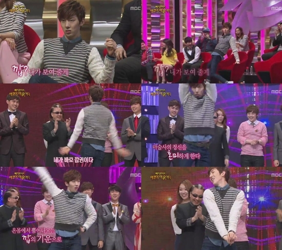 조권은 3일 방송된 MBC '일밤-매직콘서트-이것이 마술이다’(이하 ‘매직콘서트’)에서 아시아를 대표하는 마술사 군단과 출연진 앞에서 ‘깝 댄스’를 선보이며 기선 제압에 나섰다.