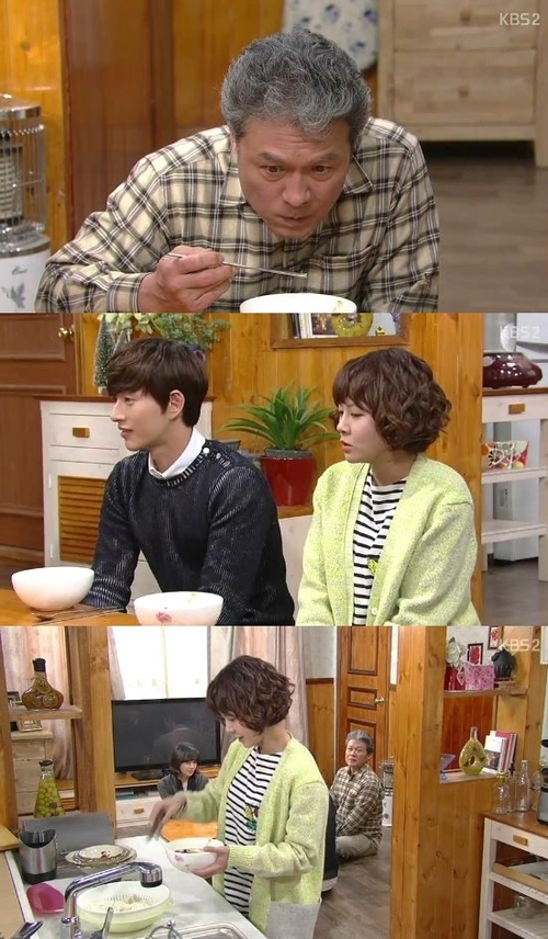 이날 방송에서 호정(최윤영 분)은 병원 퇴원 후 돌아온 시아버지 삼재에게 시원한 열무 국수를 만들었다고 말하며 그럴듯한 음식을 내놓았다. 겉은 그럴싸했지만 그동안 제대로 된 음식을 하지 못한 호정이었기에 삼재는 잔뜩 긴장한 채 음식을 맛 봤다.