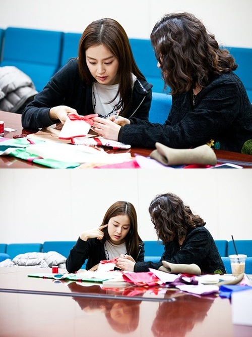 특히 김태희는 지도에 따라 유심히 바느질감을 응시하고 뭔가 잘 되지 않는 듯 손가락을 머리에 짚고 갸우뚱하고 있어 그녀의 바느질 실력에 궁금증을 품게 한다.