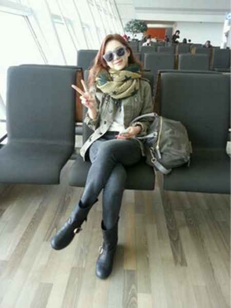 배우 박수진이 뉴욕행 비행기에 오르기 전의 공항 패션 ‘인증샷’을 공개했다.