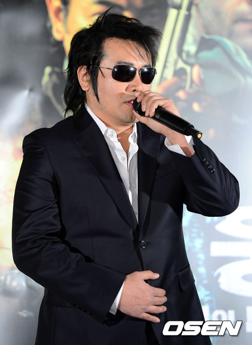 4일 오후 서울 행당동 CGV 왕십리에서 진행된 영화 '영웅-샐러멘더의 비밀' 언론시사회에서 김보성이 인사말을 전하고 있다.
