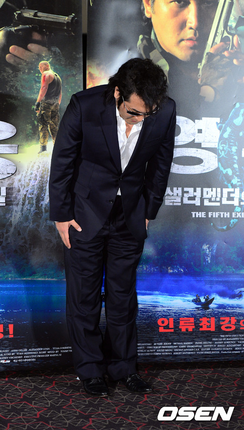 4일 오후 서울 행당동 CGV 왕십리에서 진행된 영화 '영웅-샐러멘더의 비밀' 언론시사회에서 김보성이 인사를 하고 있다.