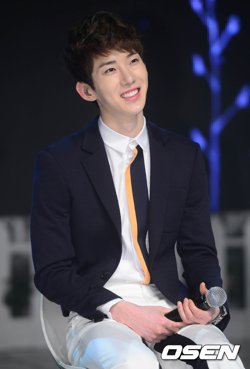 4일 오후 서울 청담동 일지아트홀에서 열린 2AM 기자간담회에서 조권이 질의응답 시간을 갖고 있다.