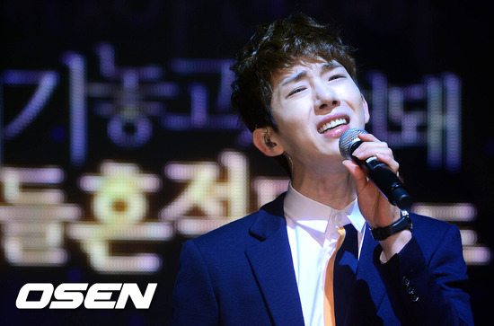 4일 오후 서울 청담동 일지아트홀에서 열린 2AM 기자간담회에서 조권이 열창하고 있다.
