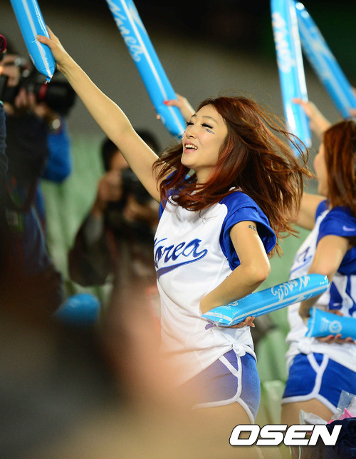 한국 치어리더들이 열띤 응원을 펼치고 있다.
