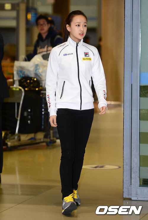 5일 아침 인천국제공항을 통해 입국한 손연재가 입국장을 빠져나오고 있다.