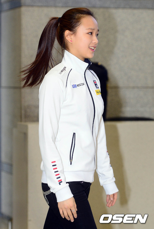 5일 아침 인천국제공항을 통해 입국한 손연재가 입국장을 빠져나오고 있다.