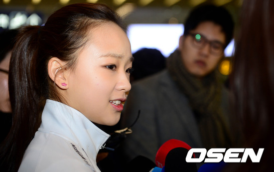 5일 아침 인천국제공항을 통해 입국한 손연재가 입국장에서 인터뷰를 하고 있다.