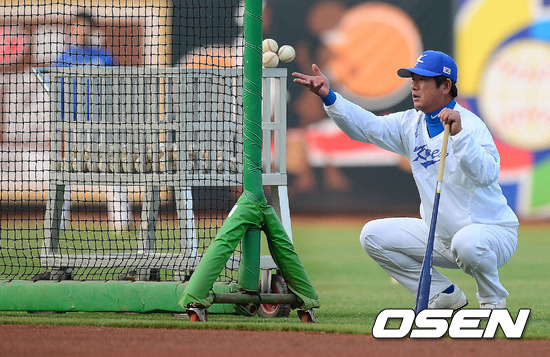 5일 오후 대만 타이중 인터컨티넨탈구장에서 2013 WBC 1라운드 B조 한국과 대만의 경기, 경기에 앞서 류중일 감독이 선수들의 훈련을 돕고 있다.