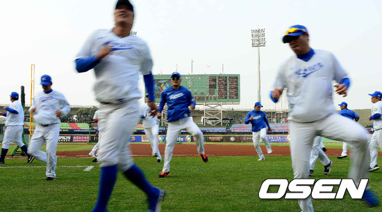 5일 오후 대만 타이중 인터컨티넨탈구장에서 2013 WBC 1라운드 B조 한국과 대만의 경기, 경기에 앞서 한국 대표팀 선수들이 몸을 풀고 있다.