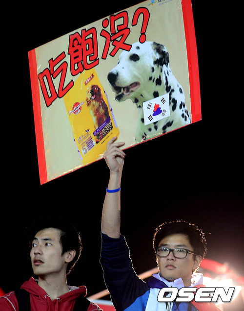 개고기 피켓으로 한국 대표팀 자극하는 대만 야구팬