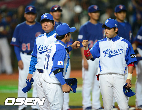 5일 오후 대만 타이중 인터컨티넨탈구장에서 2013 WBC 1라운드 B조 한국과 대만의 경기, 경기에 앞서 한국 선수들과 감독이 소개되고 있다