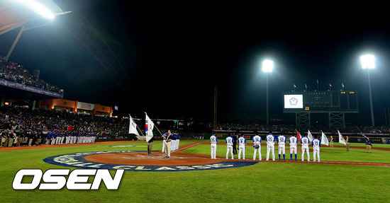 5일 오후 대만 타이중 인터컨티넨탈구장에서 2013 WBC 1라운드 B조 한국과 대만의 경기, 경기에 앞서 양팀 국가가 연주되고 있다