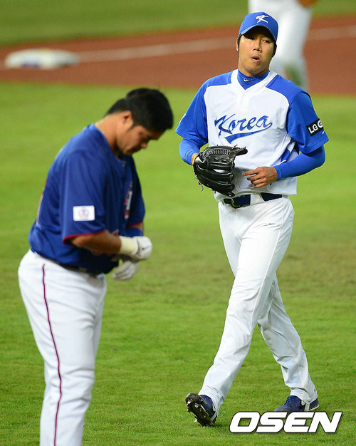 5일 오후 대만 타이중 인터컨티넨탈구장에서 2013 WBC 1라운드 B조 한국과 대만의 경기, 1회초 1사 린저쉬앤에게 안타를 허용한 장원준 선발투수가 아쉬워하고 있다