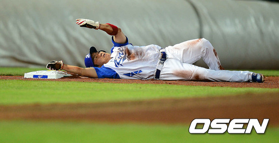 5일 오후 대만 타이중 인터컨티넨탈구장에서 2013 WBC 1라운드 B조 한국과 대만의 경기, 1회말 2사 1루 이대호의 타석때 1루 주자 정근우가 도루 성공했다. 이후 송구 실책으로 진루 시도한 정근우가 3루에서 태그아웃된 후 아쉬워하고 있다.