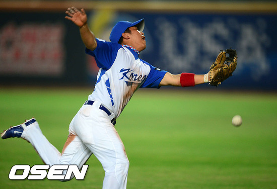 5일 오후 대만 타이중 인터컨티넨탈구장에서 2013 WBC 1라운드 B조 한국과 대만의 경기, 3회초 2사 1루 정근우 2루수가 린즈셩의 파울타구를 놓치고 있다.
