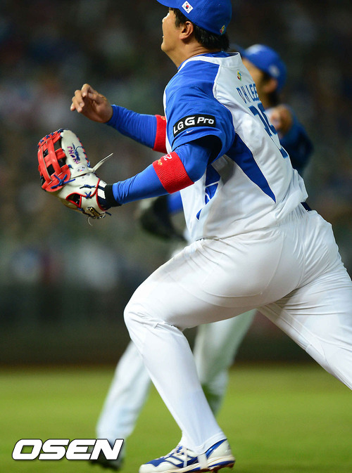 5일 오후 대만 타이중 인터컨티넨탈구장에서 2013 WBC 1라운드 B조 한국과 대만의 경기, 3회초 무사 1루 이대호가 대만 린저쉬앤의 번트타구를 잡고 있다.