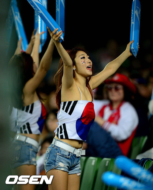 5일 오후 대만 타이중 인터컨티넨탈구장에서 2013 WBC 1라운드 B조 한국과 대만의 경기, 한국 치어리더가 열띤 응원을 펼치고 있다