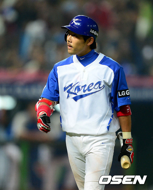 5일 오후 대만 타이중 인터컨티넨탈구장에서 2013 WBC 1라운드 B조 한국과 대만의 경기, 5회말 선두타자 이용규가 내야땅볼로 아웃되자 아쉬워하고 있다