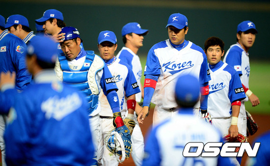 경기종료 후 1라운드 탈락한 한국대표팀 선수들이 아쉬운 표정을 짓고 더그아웃으로 들어가고 있다./jpnews@osen.co.kr