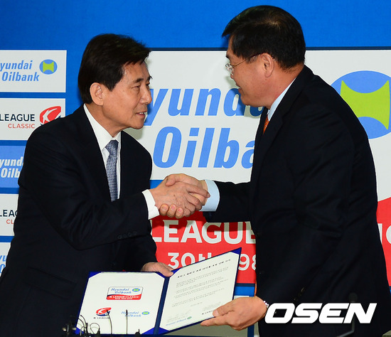 6일 오전 서울 종로구 신문로 축구회관에서 한국프로축구연맹은 ‘현대오일뱅크’와 프로축구 최상위리그 ‘K리그 클래식’의 대회 타이틀 후원 협약을 맺었다.