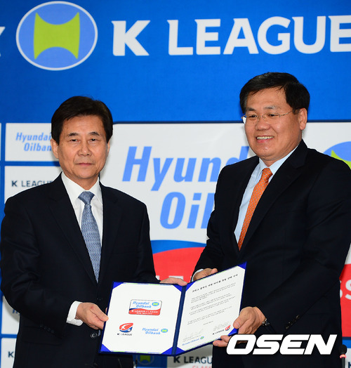 6일 오전 서울 종로구 신문로 축구회관에서 한국프로축구연맹은 ‘현대오일뱅크’와 프로축구 최상위리그 ‘K리그 클래식’의 대회 타이틀 후원 협약을 맺었다.