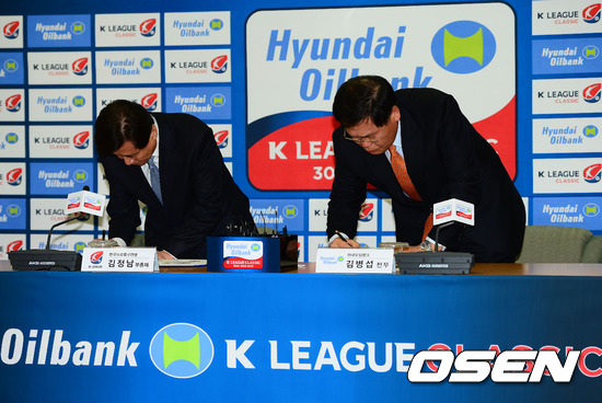 6일 오전 서울 종로구 신문로 축구회관에서 한국프로축구연맹은 ‘현대오일뱅크’와 프로축구 최상위리그 ‘K리그 클래식’의 대회 타이틀 후원 협약을 맺었다.