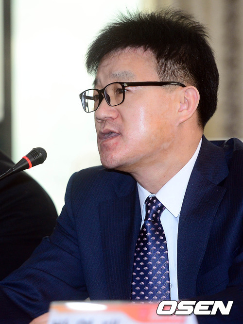 6일 오전 서울 방이동 올림픽파크텔에서 열린 SK 핸드볼 코리아리그 미디어데이에서 부산BISCO 김갑수 감독이 인사말을 하고 있다.
