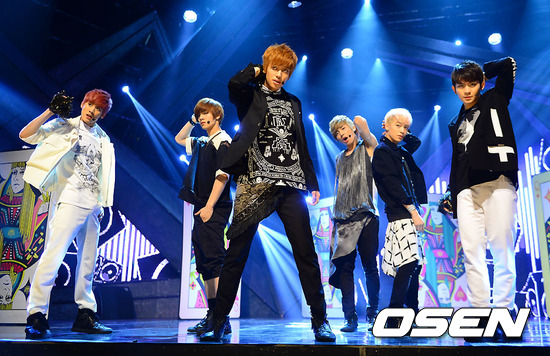 6일 오후 서울 가양동 CJ E&MA 스튜디오에서 진행된 KM 생방송 음악프로그램 '뮤직 트라이앵글'에서 틴탑이 멋진 무대를 펼치고 있다