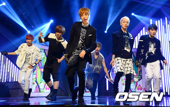 6일 오후 서울 가양동 CJ E&MA 스튜디오에서 진행된 KM 생방송 음악프로그램 '뮤직 트라이앵글'에서 틴탑이 멋진 무대를 펼치고 있다