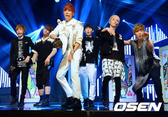 6일 오후 서울 가양동 CJ E&MA 스튜디오에서 진행된 KM 생방송 음악프로그램 '뮤직 트라이앵글'에서 틴탑이 멋진 무대를 펼치고 있다