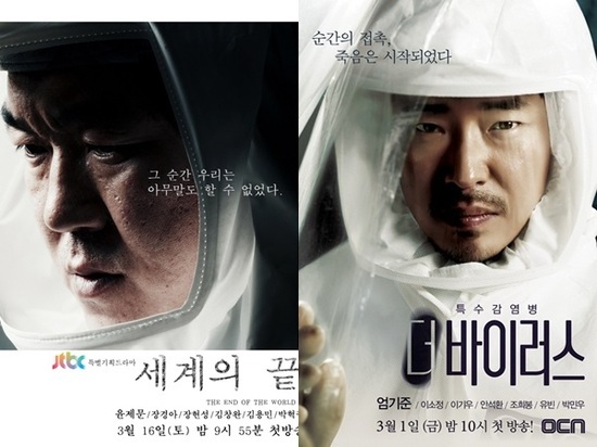 JTBC는 오는 16일 ‘세계의 끝’을 선보일 예정이고 OCN은 지난 1일 ‘더 바이러스’ 방송을 시작했다. 두 작품 모두 지금까지 국내에서는 볼 수 없었던 독특한 내용의 장르드라마로 주목받고 있는 상황.