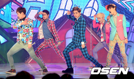 6일 오후 서울 유니클로 악스홀에서 진행된 MBC MUSIC '쇼 챔피언'에서 샤이니가 멋진무대를 선보이고 있다.
