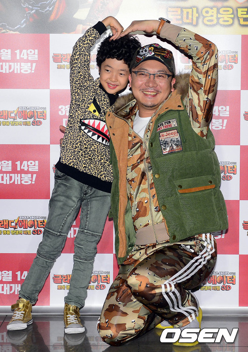 6일 오후 서울 자양동 건대입구 롯데시네마에서 열린 애니메이션 '글래디에이터' VIP 시사회에서 염경환과 아들 윤률이 포토타임을 갖고 있다.