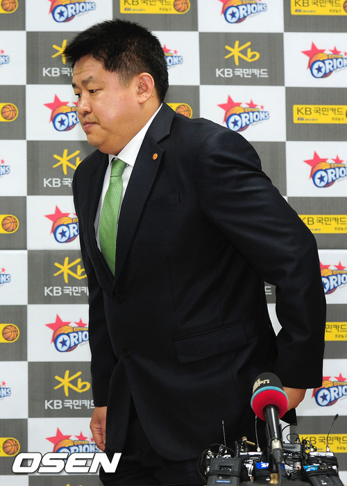 6일 오후 경기 일산동구 고양시 고양체육관에서 진행된 2012-2013 KB국민카드 프로농구 고양 오리온스와 원주 동부 경기, 경기에 앞서 승부조작 관련 강동희 감독의 기자회견에서 강동희 감독이 퇴장하고 있다