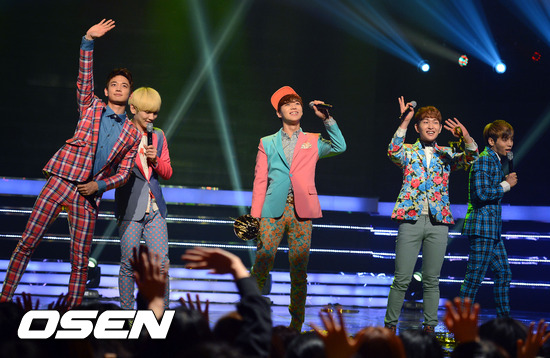 6일 오후 서울 유니클로 악스홀에서 진행된 MBC MUSIC '쇼 챔피언'에서 챔피언송을 차지한 샤이니가 기뻐하고 있다.