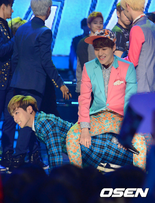 6일 오후 서울 유니클로 악스홀에서 진행된 MBC MUSIC '쇼 챔피언'에서 챔피언송을 차지한 샤이니가 1위 공약을 실천하고 있다.