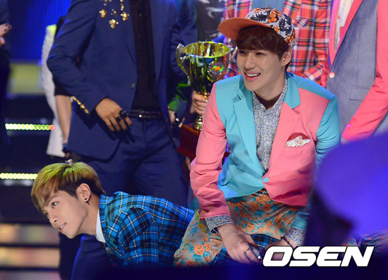 6일 오후 서울 유니클로 악스홀에서 진행된 MBC MUSIC '쇼 챔피언'에서 챔피언송을 차지한 샤이니가 1위 공약을 실천하고 있다.