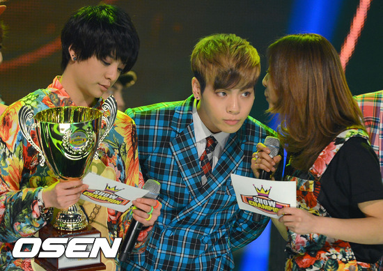 6일 오후 서울 유니클로 악스홀에서 진행된 MBC MUSIC '쇼 챔피언'에서 챔피언송을 루나와 종현이 이야기를 나누고 있다.