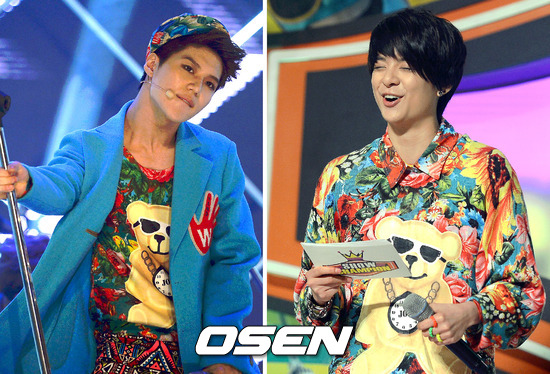 6일 오후 서울 유니클로 악스홀에서 진행된 MBC MUSIC '쇼 챔피언'에서 MC 엠버는 지난주 쇼 챔피언에서 샤이니 멤버 태민이 입었던 상의를 입어 눈길을 끌었다.