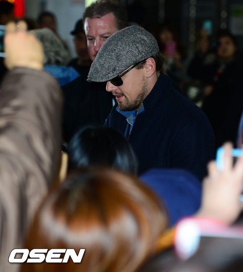 6일 저녁 김포공항을 통해 입국한 할리우드 배우 레오나르도 디카프리오가 입국장을 통과하며 팬들에게 사인을 해주고 있다.