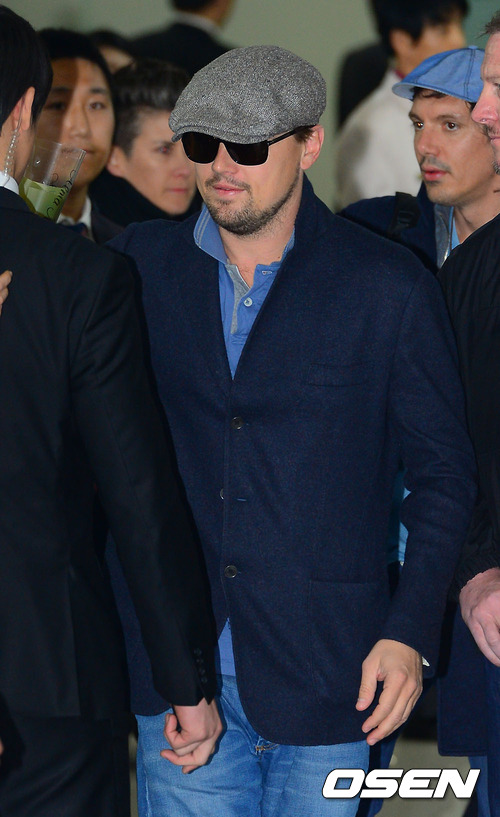 6일 저녁 김포공항을 통해 입국한 할리우드 배우 레오나르도 디카프리오가 입국장으로 들어서고 있다